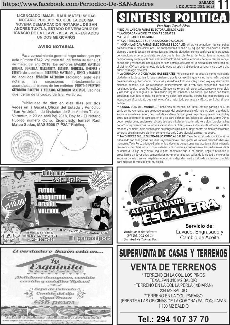 DOMILalo Rojas A2 jun 20181 Min. de lecturaPERIODICO SAN ANDRES TUXTLAAÑO XIX No. 967 02 de JUNIO DE 2018.